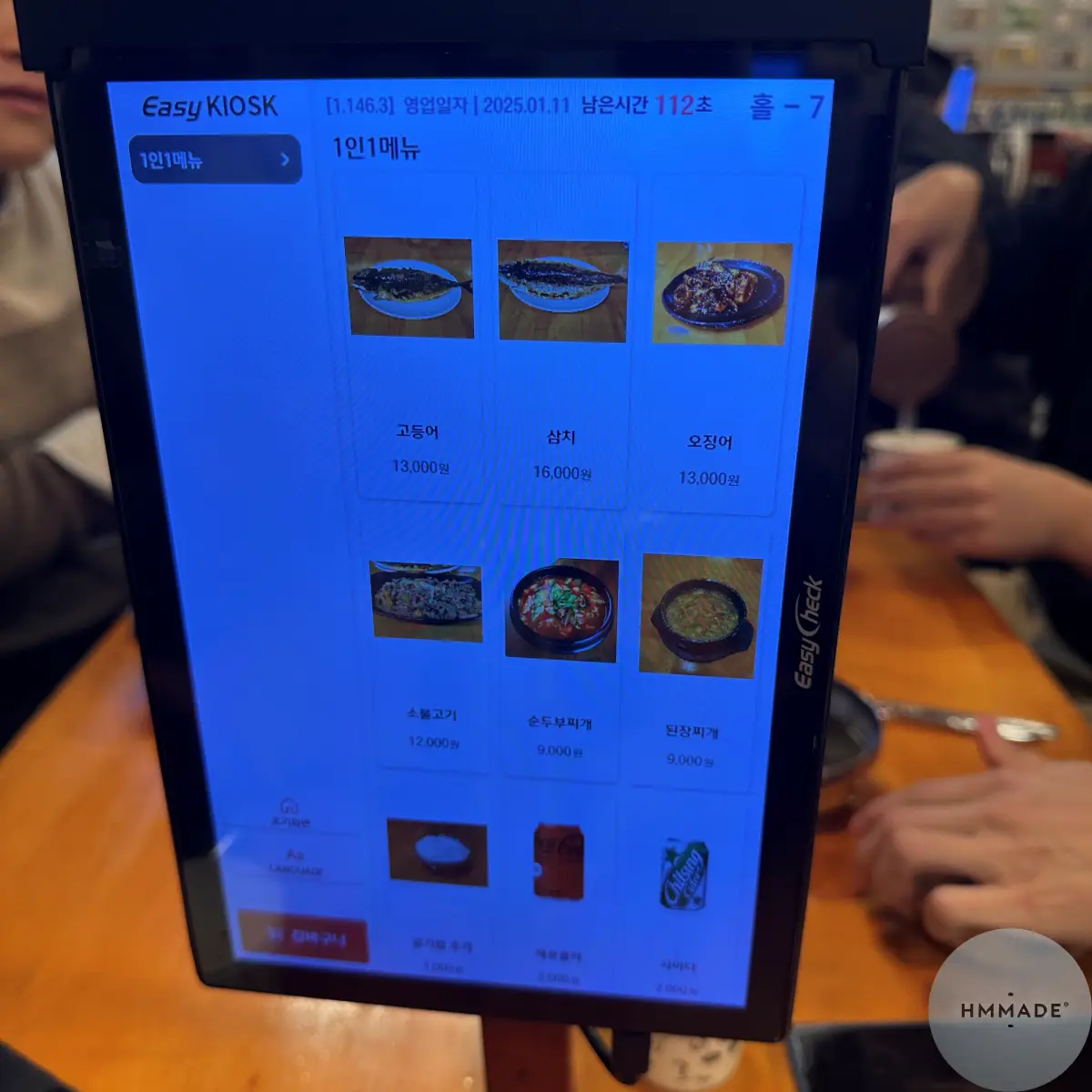 식탁에 있는 키오스크로 주문을 하고 바로 결제를 할 수 있는 시스템이어서 간편했습니다. 사람들이 많아서 주문 하느라 왔다갔다 했다면 식당 내부가 혼잡하게 느껴졌을 것 같아요. 착석해서 메뉴주문하고 앉아있으면 직원분들이 금방 메뉴를 가져다 주십니다. 의자 안에 물건을 보관할 수 있는 의자여서 옷에 냄새가 밸 염려를 좀 덜 수 있었어요.